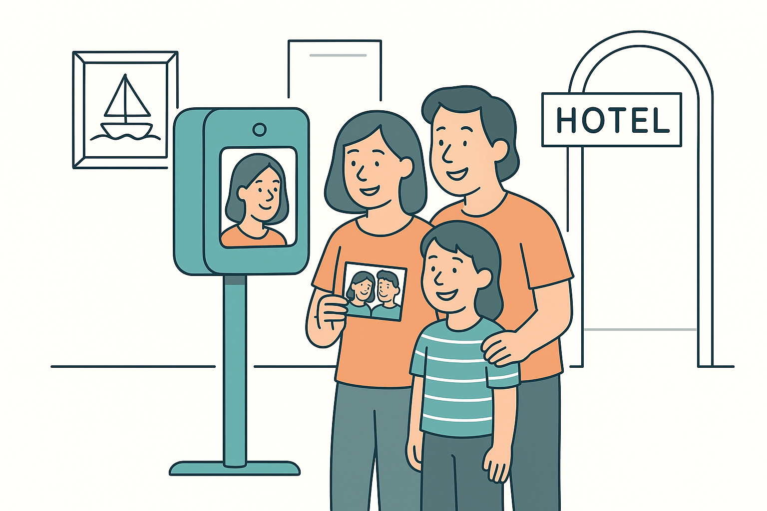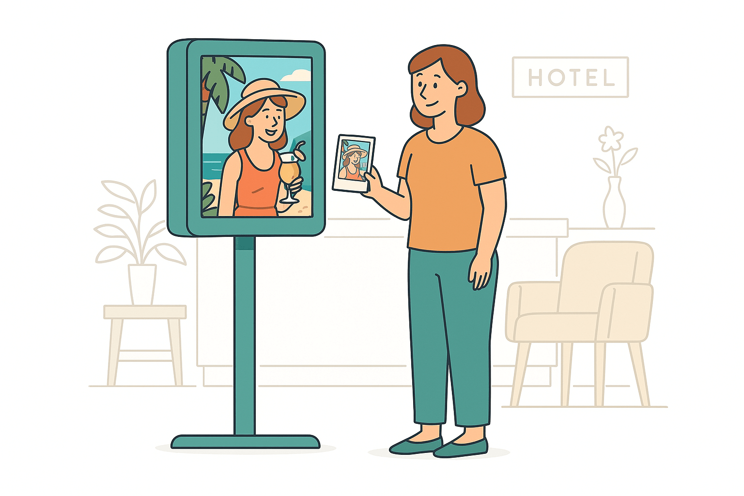 Kalıcı photobooth cihazları, lobi gibi bekleme alanlarında misafirlerinizi eğlendirirken otelinize ilgi uyandırır. Giriş ve çıkış anlarını eğlenceli hale getirir.
